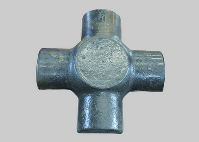 十字軸是傳動軸上的關鍵部件,與叉頭配合使用,該十字軸材質30Cr2Ni4,重1413kg。采用開式模鍛成型。相比自由鍛成型的大型十字軸,采用模鍛成型大大提高了材料利用率,降低了機加工工時,節(jié)約了成本。本公司可完成各種型號十字軸的模鍛成型。