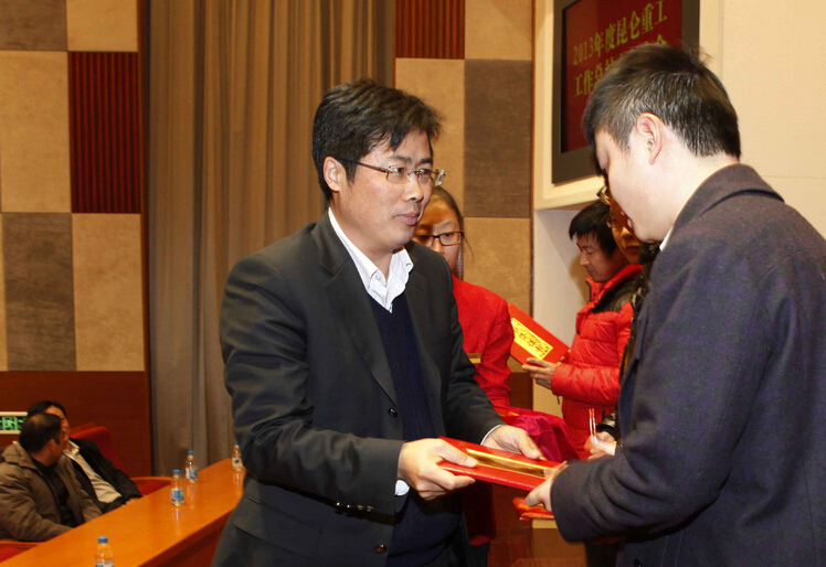集團公司副總經(jīng)理、昆侖重工董事長張劉瑜為優(yōu)秀員工頒獎